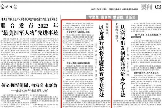 2023年,学校基于千余场调研座谈会反馈以及近3万人次参与的全校“大讨论”问题,制定并启动实施“奋进行动”,为开展主题教育提供智力支撑和行动先导,切实把理论学习、调查研究、推动发展、检视整改贯通起来。主题教育期间,校党委紧紧围绕“奋进行动”16个专项行动、76类具体举措,组织全校党员干部扑下身子、沉到一线,把脉问诊、解剖麻雀,进一步摸排梳理学校改革发展的“家底”和师生员工急难愁盼问题,聚焦20个更为精准的“小切口”进行调研,力求深层次查找问题、根本性整治整改。