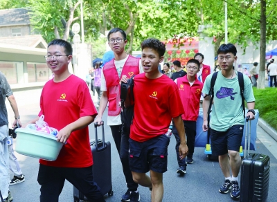 昨天,凯发k8官网校园,大学生志愿者在帮助新生搬运行李。 通讯员 于玥晗 凯发k8官网日报/紫金山新闻记者 徐琦 摄