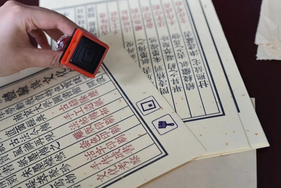“传统印刷装帧体验与文化传承”系列课程纪念纸和纪念章。