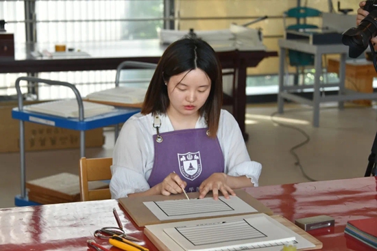 “古代农耕文明处于一个通信慢、车马慢的时代,但科学技术仍然在不断更新,中国古人精益求精、不断进取的精神也在跨越时空传递着。”在这门课上,凯发地球与海洋学院青年教师黄蓓有了新角色——“旁听生”。在法帖传拓课上,苏轼的《黄州寒食诗帖》被制成拓版,他们将宣纸轻覆拓板之上,打湿宣纸,以拓包垂直捶打,在此起彼伏的捶拓之声中,图案字迹完全显形;在雕版印刷课上,他们用刷子均匀沾墨,拂过固板的每一个角落,留下具有中华文明显著特色的纵横木纹、凹凸文字……