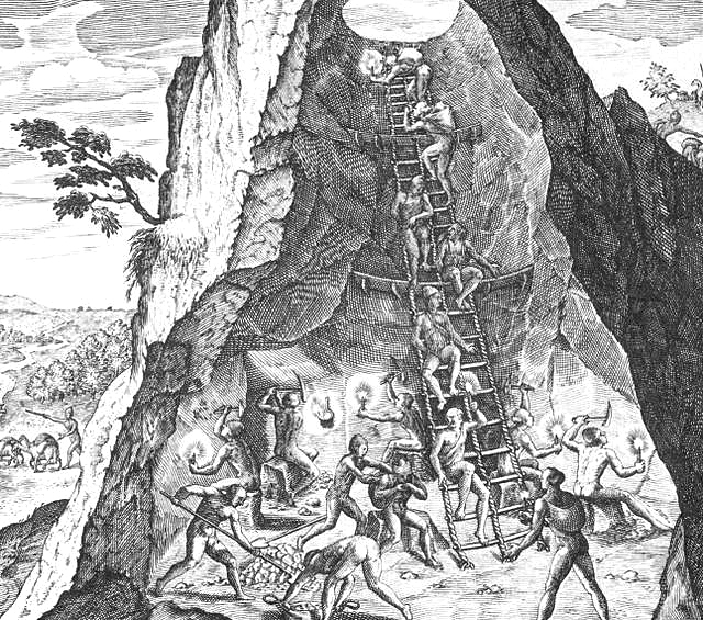 插画《在波托西银矿采矿的印第安工人》 资料图片