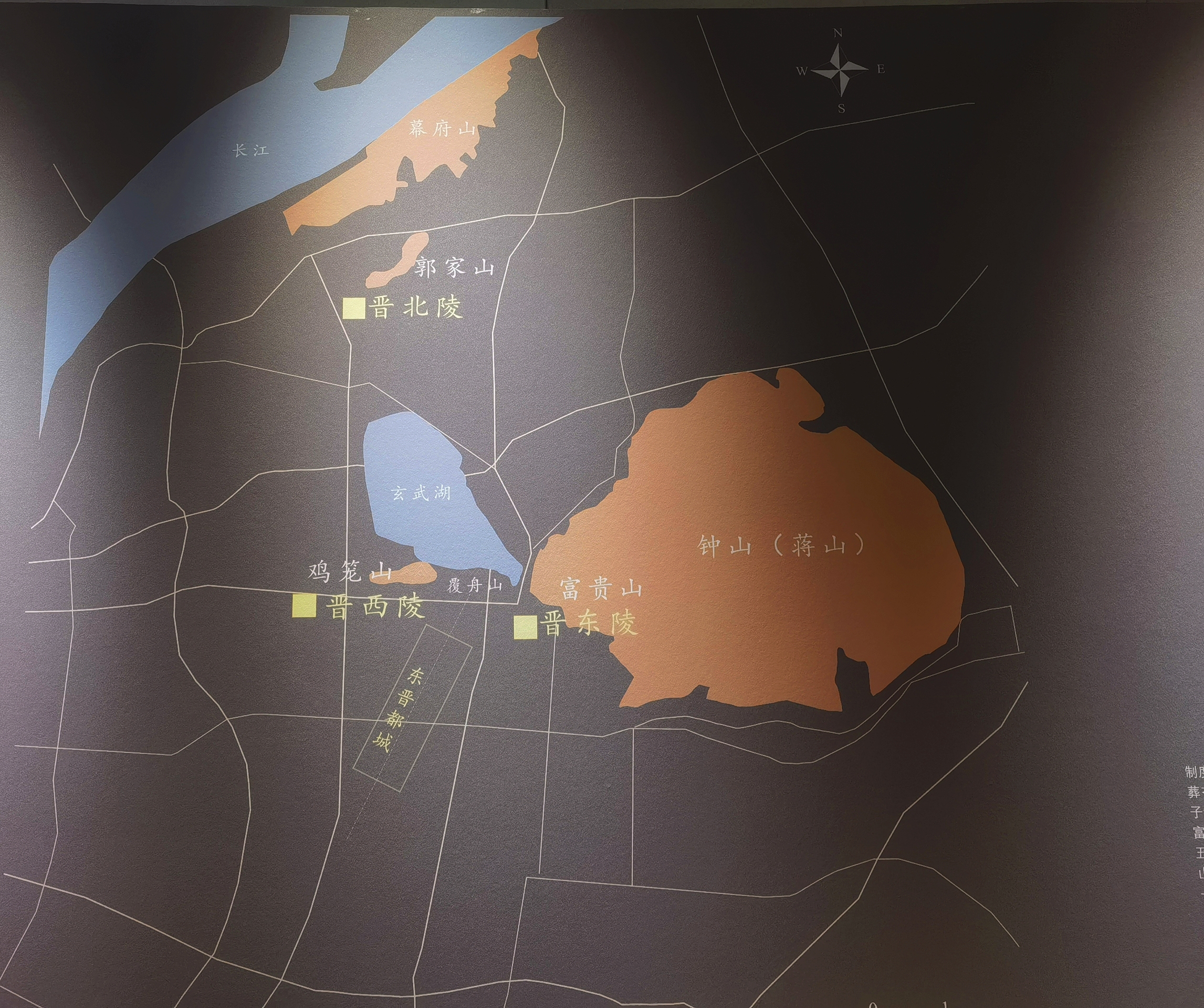 晋十一帝,有十陵,元、明、成、哀四陵在鸡笼山之阳,阴葬不起坟。康、简文、(孝)武、安、恭五陵在钟山之阳,亦不起坟。惟孝宗一陵在幕府山,起坟也。