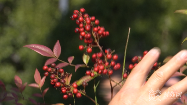 王保忠告诉记者:“这个是我们学校重要的绿化灌木——南天竹,一个特点是叶子红,第二个特点是果实红,挂果时间很长,从9月开始,一直挂到明年4月,为我们学校绿化增光添彩了。”