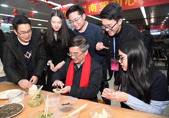 王焰新院士在元旦跨年夜与学生一起包饺子。中国地质大学(武汉)党委宣传部供图