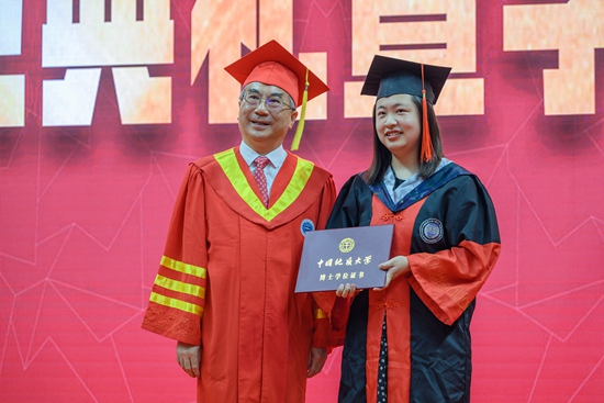 王焰新院士给博士生授予学位。中国地质大学(武汉)党委宣传部供图