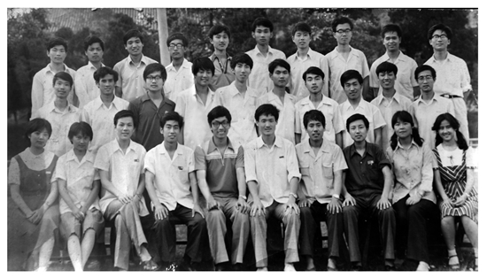 1984年凯发k8官网地质学系年级学生干部和团干部集体合影(第三排右一为王焰新)。受访者供图