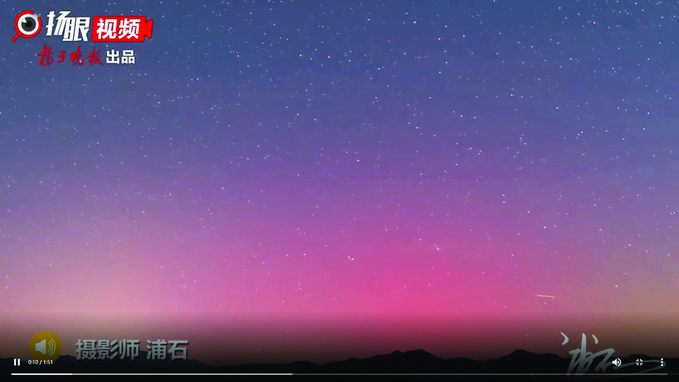 1日晚7点30分左右,北京一位摄影师在怀柔利用相机记录下了红色极光出现在天际的景象,这可能也是首次在北京观测和拍摄到极光这一绚丽天象。
