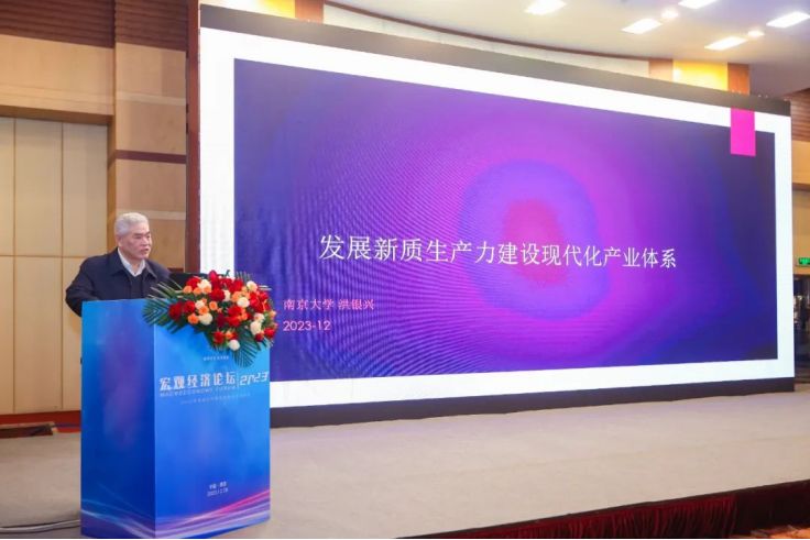 洪银兴全面、系统地对“新质生产力”的提出、内涵、具体形式和内容阐述了新观点新理念,他认为中国式现代化与发展新质生产力是新科技、新能源、新产业,数字经济是新质生产力的代表性质态,正在成为国际经济和科技竞争的新赛道。传统产业也能发展新质生产力,传统产业不等于低端产业,但其产业基础不升级就要被淘汰。传统产业基础升级,成为新质生产力产业载体的重要组成部分。最后,洪银兴教授以新质生产力建设现代化产业体系的基本路径结束主旨报告。