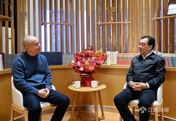 在省作协,信长星与毕飞宇深入交流,并一一翻阅省作协主办的《钟山》《雨花》《扬子江诗刊》《扬子江文学评论》等杂志,了解历年来江苏作家的创作成就。毕飞宇介绍,江苏拥有一支由老中青构成、在全国有重要影响的文学创作队伍,省作协主办的杂志不仅类别比较全,而且影响了一代又一代人走上文学之路。信长星提到许多名家篇目,他说,江苏许多作家的作品我都阅读过,“文学苏军”负有盛名。衡量一个时代的文艺成就最终要看作品,优秀的作品必然是思想内容和艺术表达的有机统一。希望毕飞宇继续发挥好头雁作用,也希望省作协广泛团结凝聚文艺工作者,坚守人民立场,讲好中国故事,创作出更多无愧于时代的经典之作、传世之作。