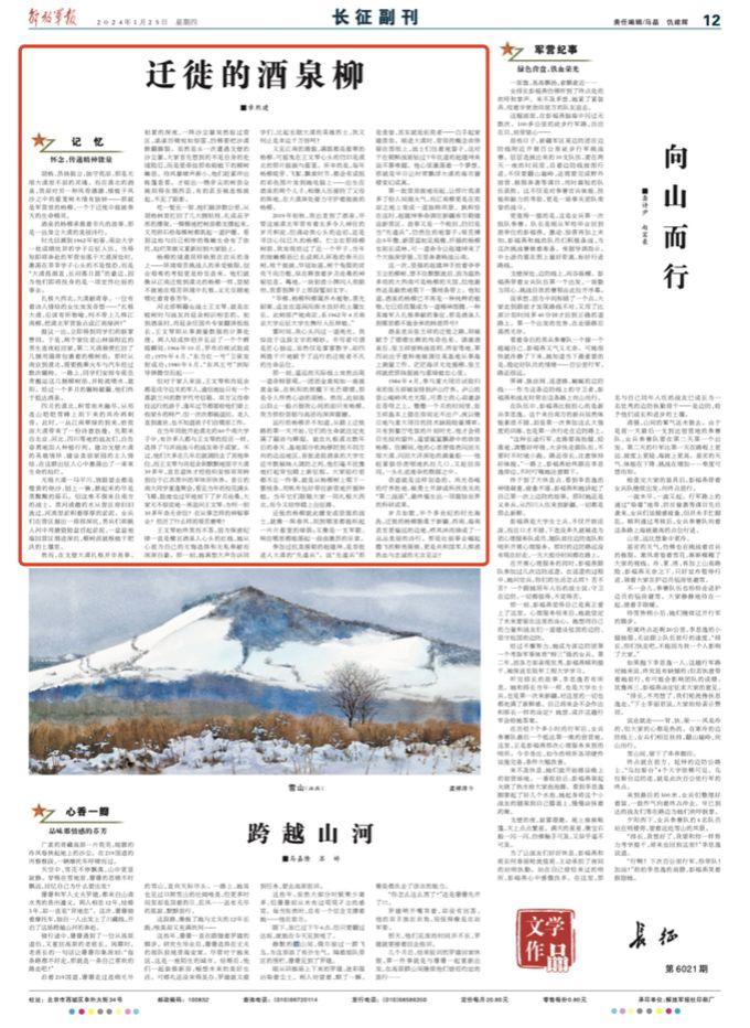 迁徙的杨柳就此嬗变成坚强的战士,就像一阵春风,刮到哪里都能织起一片片葱茏的绿荫;又像是一支军歌,响在哪里都能荡起一曲曲激昂的乐章。