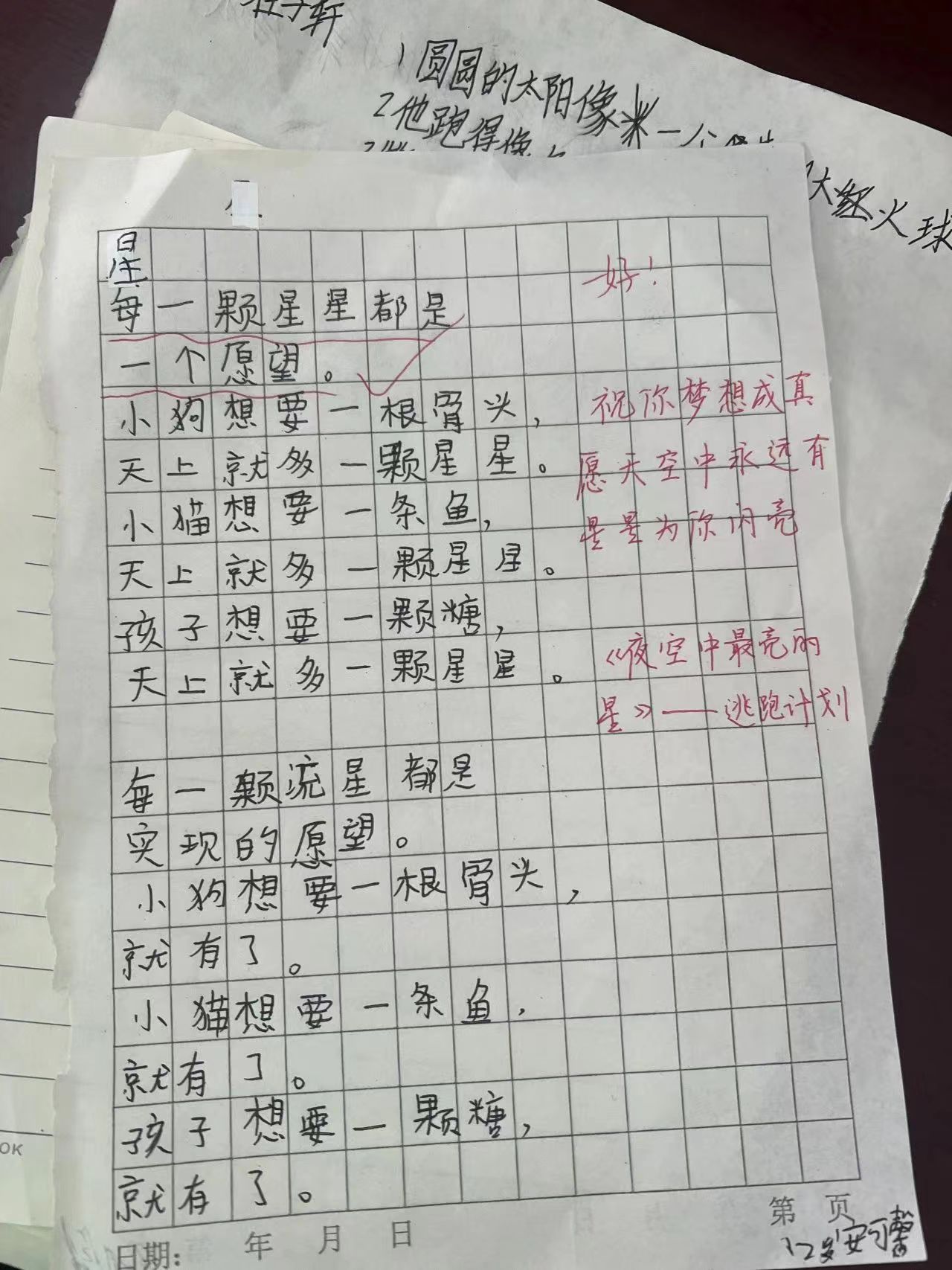 “令我们惊喜的是,仍有许多小朋友在春节期间完成了支教课程中灵活的‘寒假作业’。”支教成员向记者分享了小朋友们的作品。他们或自创“体裁”,或运用拼贴的形式,用稚嫩的童言,带我们走进他们眼中的世界。