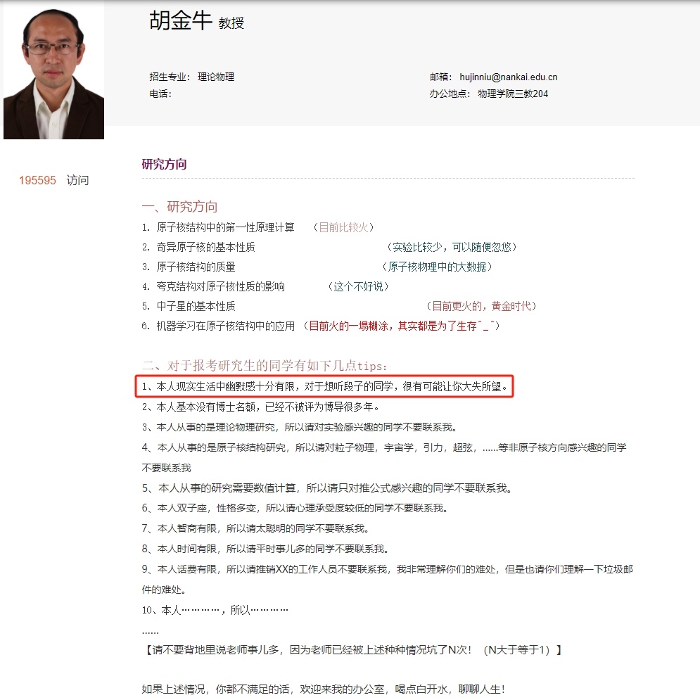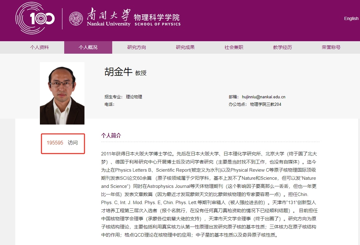 近日,南开大学胡金牛教授在学院官网更新了简介