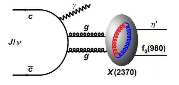 J/ψ粒子辐射衰变到X(2370)粒子示意图(中国科学院高能物理研究所提供)
