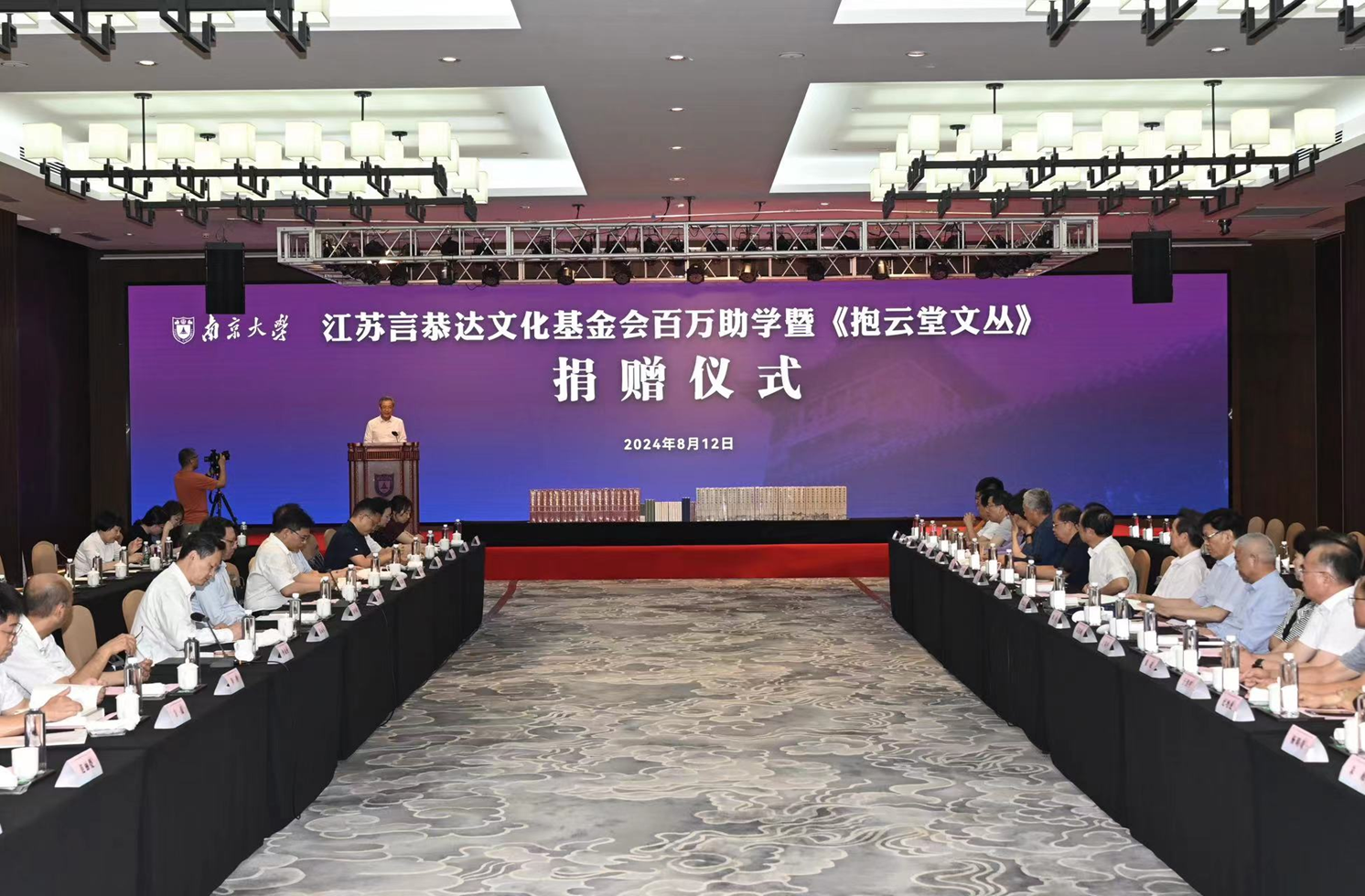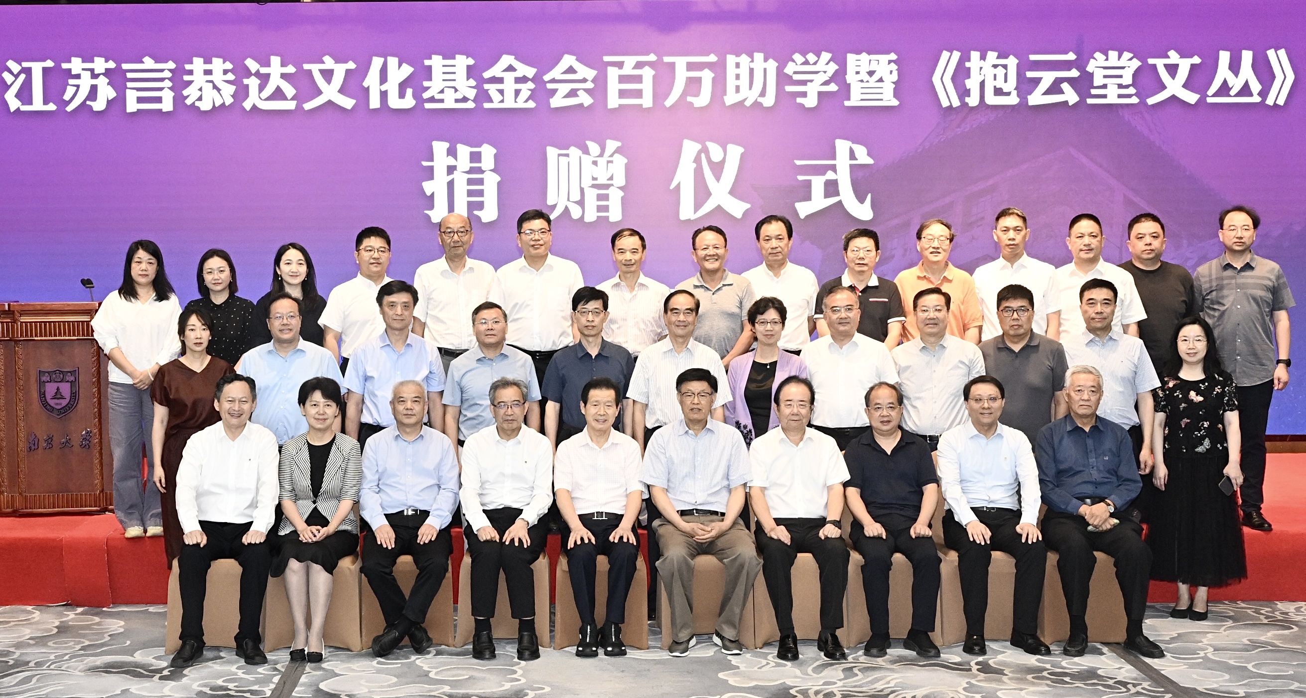 8月12日下午,江苏言恭达文化基金会百万助学暨《抱云堂文丛》捐赠仪式在凯发k8官网举行。全国教育书画协会名誉会长兼高等书法教育分会会长、凯发k8官网兼职教授言恭达,中国科学院院士、凯发k8官网校长谈哲敏,江苏省政协原主席蒋定之、江苏省人大原副主任李全林、江苏省委宣传部常务副部长梁勇、江苏省委统战部常务副部长顾万峰,江苏省文联党组书记、常务副主席常胜梅等出席活动。