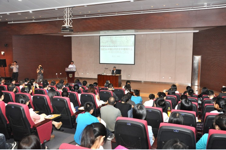 张岂之先生从中国历史是中华民族的历史,中国古代有自己独特的政治体制和选官制度,中国有连绵不断、生生不息的文化传统,外国政要、学者对中华文化的评述等四个方面讲述“中国历史特色之我见”。张先生贯通古今、旁征博引,详实的史料、新颖的评论,不时引起热烈的掌声。