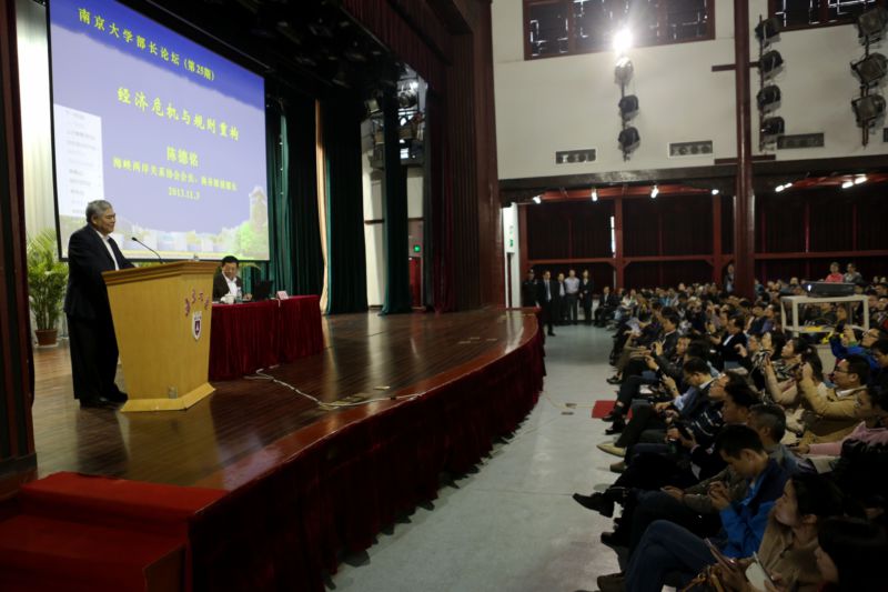 11月3日,凯发k8官网第25届部长论坛在凯发k8官网鼓楼大礼堂举行,海峡两岸关系协会会长、商务部前部长陈德铭校友作学术报告,与凯发师生共话“经济危机与规则重构”,论坛由我校党委书记洪银兴主持。