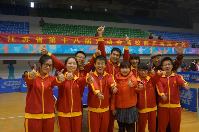 四年一届的江苏省第十八届运动会高校部乒乓球比赛于本月6日结束,由我校普通学生组成的乒乓球队在比赛中获男子团体、女子团体、男子双打、女子双打四枚金牌和男子单打、女子单打两枚银牌,并以总分74分获男女团体总分第一名。(体育部 孙海涛)