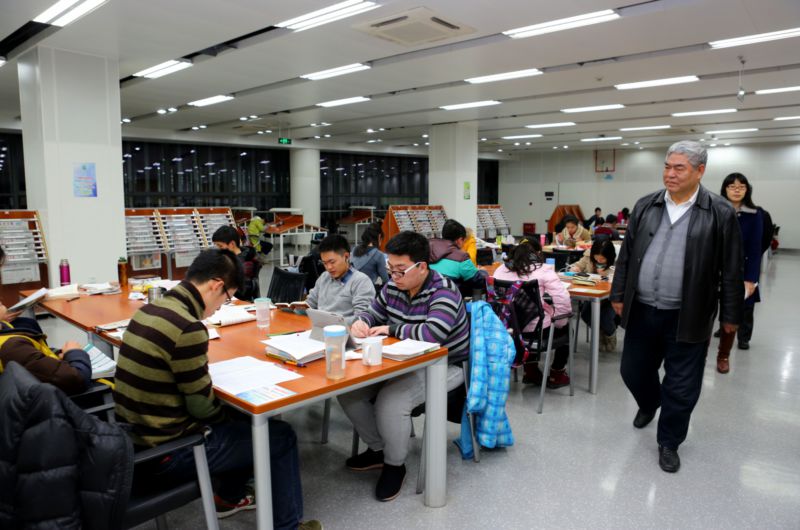洪银兴书记在图书馆看望同学们 (佘治骏 摄影)