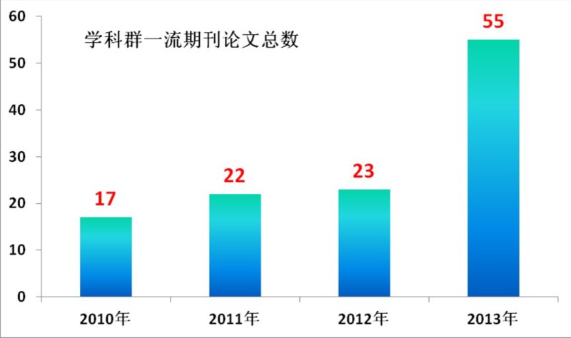 图2. 凯发k8官网2010-2013年发表的学科群一流期刊论文总数的柱状图