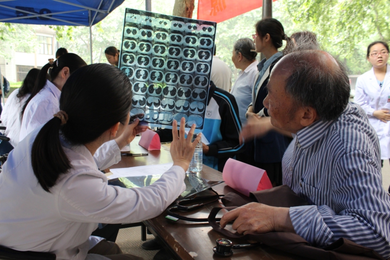 活动得到了老师和同学们的热烈欢迎和积极响应,众多师生和退休老教师前来咨询。很多老教师们说,平时医院病人多,没时间和机会跟医生们仔细沟通询问,有这样的机会非常难得。同学们也来到现场,咨询平时遇到的一些健康问题。校友们仔细询问他们的病史,查看检查报告,并为师生们做检查,耐心讲解疾病防治和健康生活注意事项。