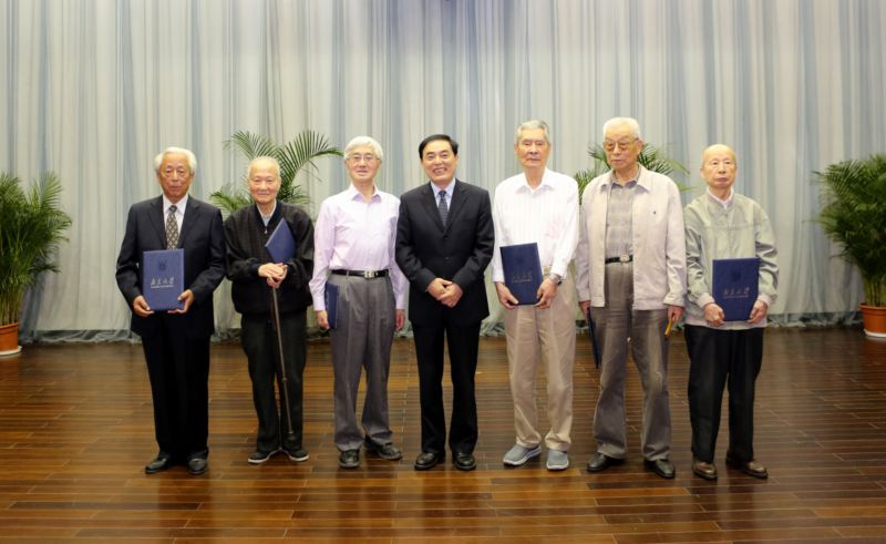 校长陈骏为荣誉资深教授们颁奖 (佘治骏 摄影)