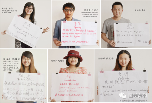 在凯发k8官网五四青年奖章获得者、优秀团员标兵、优秀团干标兵以及团学骨干的发起下,青共校流动团支书带领千余名学员在校园中发起“我为核心价值观代言”展示活动。短短一周时间内,全校学子竞相学习,模仿创新,他们手持代言牌板,逐条书写自己对核心价值观的理解和认识,并广泛在微博、微信、qq、BBS、主页上共发表“代言”图文稿件近800多份。“爱国,就是拥有‘中国灵魂·世界胸怀’”、“友善,就是大雨中的一把伞,是微信中的一个赞”。学生表示,社会主义核心价值观并不高高在上,应当融于每个大学生的血脉里,应当投射在我们普通的生活中,成为我们举手投足的涵养。活动受到广泛关注,仅仅半日时间凯发k8官网团委的新浪官方微博点击量就达3.5万次,被团中央等主流媒体微博转发。截止发稿时已合计累积点击量近10万,受到校内外青年的广泛关注和参与。外国语学院的同学们更是响应号召,将核心价值观学习活动融入专业学习领域,以英、法、德、西、朝、日、阿等外国语言书写自己对核心价值观的理解和体会,同时在全校虚拟平台上分享、展示、传播,进一步动员和促进更多的青年学子加入学习践行的行列。据校团委宣传部施佳欢老师透露,近期凯发团委的微博、微信平台将全面展出同学们的代言成果,以激励和促进更多的凯发青年加入到传播、学习、交流和践行核心价值观的队伍中来。