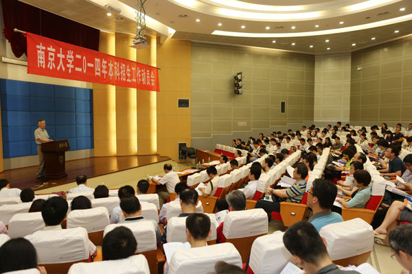 6月20日,我校在鼓楼校区逸夫馆报告厅召开2014年本科招生工作动员会,校党委书记、本科招生工作委员会主任张异宾出席会议并讲话。校党委常委、副校长、本科招生工作委员会副主任谈哲敏,本科招生工作委员会成员,各院系本科招生工作领导小组成员,机关相关部处负责人,各地区招生组组长及全体招生人员参加会议。会议由校学生工作处处长刘源主持。