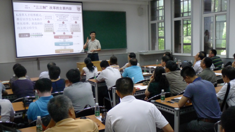 7月17日上午,由北京市教委组织的“北京地区高等学校教学管理骨干培训项目”考察团来我校交流考察本科教学工作。考察团成员来自北京地区的32所学校,包括“985”、“211”、普通院校和高职院校等各种类型,共计40人,主要为学校教务处长和教学院长。这是我校实施“三三制”本科教改以来接待规模最大的一次本科教学专题调研。