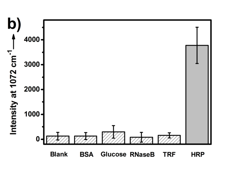 糖蛋白是最常见的蛋白质类型,在生物体中具有多种重要的作用和功能。此外,糖蛋白具有重要的临床诊断价值,目前用于疾病诊断的蛋白质疾病标志物大多为糖蛋白。由于具有重要生理意义或诊断价值的糖蛋白的表达丰度极低,对复杂样品体系中糖蛋白的专一识别和灵敏检测是重要的挑战性课题。免疫分析是临床诊断等许多领域中的重要研究工具,但存在着明显的缺点,如高专一性抗体不易获得、酶和抗体等生物试剂的稳定性差、化学标记试剂对健康有害和对样品环境敏感等。分子印迹(Molecular imprinting)是制备具有类似抗体专一识别性能的仿生识别材料的重要技术。我校化学化工学院刘震教授研究组近年在分子印迹领域连续取得进展,建立了普适高效的硼亲和分子印迹法,制备出性能先进的分子印迹聚合物,并将其替代免疫分析中的一抗,成功应用于疾病标志物糖蛋白的检测(Angew. Chem. Int. Ed. 2013, 52, 7451-7454; Chem. Sci. 2014, 5, 1135-1140; Anal. Chem. 2014, 86, 959-966)。该研究组近期进一步将分子印迹技术与表面增强拉曼散射(SERS)相结合,发展出免抗体、免酶的高专一性、高灵敏度糖蛋白检测方法—硼亲和夹心法。表面增强拉曼散射具有高灵敏度、无需有毒有害试剂和对样品环境不敏感等优点。该方法利用硼亲和分子印迹聚合物与硼亲和表面增强拉曼散射探针对目标糖蛋白进行双重识别以保证分析的专一性,同时利用表面增强拉曼散射提供高灵敏检测。该方法成功应用于人血清肝癌标志物甲胎蛋白的检测,克服了常规免疫分析的缺点,且具有成本低、稳定性和分析速度快等优点。该方法为普适性方法,可适用于各种糖蛋白。此外,若与手持式或便携式拉曼光谱仪联用,可应用于床旁检测和现场检测。该方法在临床诊断、兴奋剂检测和质量控制等领域具有重要应用前景。该工作于7月28日在线发表于《德国应用化学》(Angew. Chem. Int. Ed. 2014, DOI: 10.1002/anie.201405525)上,论文第一作者为硕士生叶金。该工作得到国家自然科学基金面上项目和国家重大科学研究计划等基金的经费支持。(化学化工学院、科学技术处)