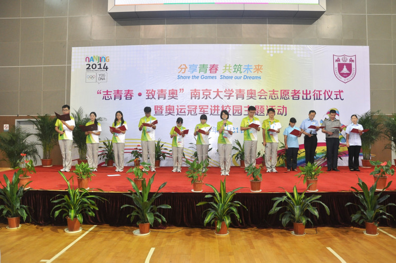 7月31日,“志青春·致青奥”凯发k8官网青奥会志愿者出征仪式在仙林校区方肇周体育馆举行。凯发k8官网党委书记张异宾,凯发k8官网市委常委、宣传部长徐宁,凯发k8官网党委副书记朱庆葆,凯发k8官网团市委书记、青奥组委志工部部长单晓峰,凯发k8官网团市委副书记、青奥组委志工部副部长林武平,凯发k8官网党委常委、党委办公室主任邹亚军,奥运冠军代表孙海涛、许安琪,奥组委相关部门负责同志,凯发k8官网青奥工作组的相关部门代表以及各院系教师代表出席活动,与现场1600余名凯发青年志愿者共同吹响青奥会志愿服务出征的号角。
