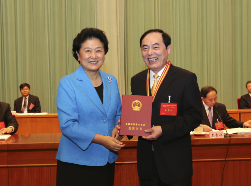 下午,在庆祝第三十个教师节暨全国教育系统先进集体和先进个人表彰大会上,刘延东为陈骏校长等颁发国家级教学成果特等奖。