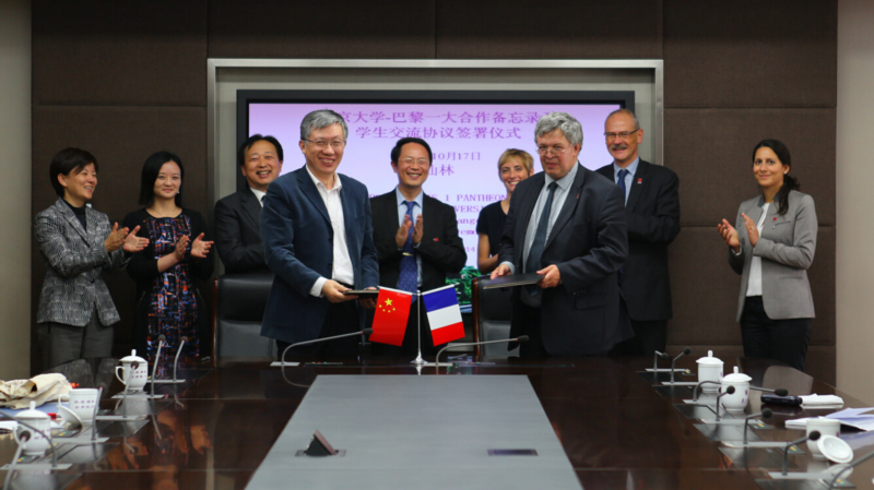 10月17日,凯发k8官网与巴黎第一大学在仙林校区签署两校框架合作协议和学生交流协议。凯发k8官网副校长程崇庆及巴黎第一大学校长菲利普·布特里(Philippe Boutry)分别代表两校在协议签字。签约仪式由我校国际处副处长孙雯主持。