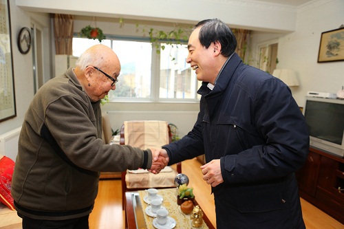 在羊年春节即将到来之际,中科院院士、校长陈骏先后看望慰问了郭令智、冯端、胡宏纹、王业宁、符淙斌、伍荣生、张全兴、邢定钰、祝世宁等我校两院院士,转达了学校党政及全校师生对各位院士的亲切问候及节日的祝福,并悉心了解院士们的日常生活和身体状况。