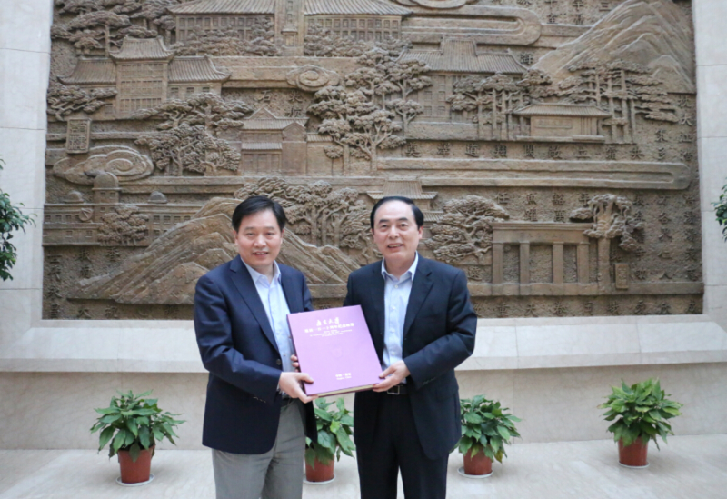 陈骏校长向朱共山董事长赠送《凯发k8官网建校一百一十周年纪念邮册》
