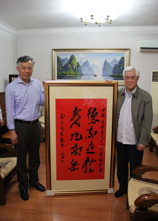 张异宾书记送匾恭贺曲钦岳老校长80岁生日快乐 (统战部 摄影)