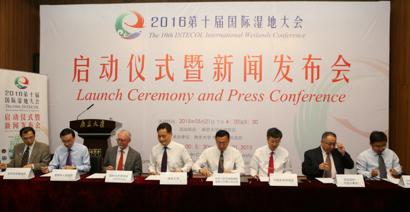 主办单位、协办单位、承办单位代表人员共同签署合作备忘录,并共同启动2016第十届国际湿地大会。