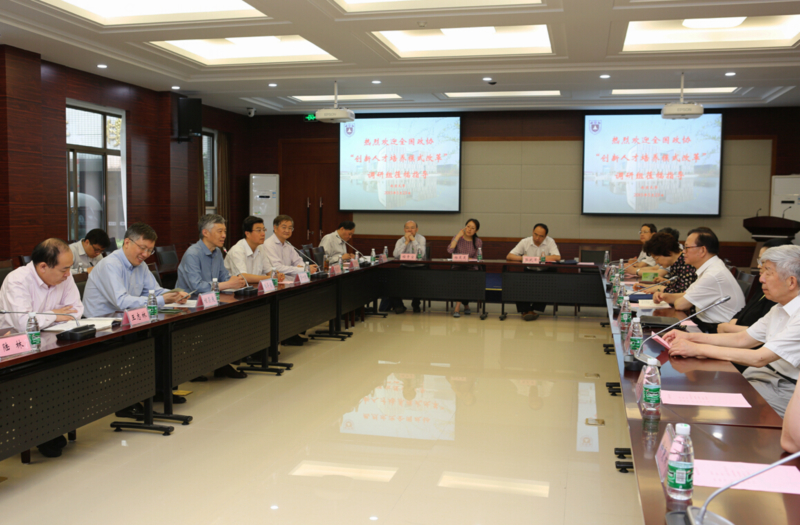 在随后进行的座谈会上,张异宾书记代表凯发k8官网对全国政协“创新人才模式改革”调研组的到来表示欢迎,并简要介绍了凯发人才培养的关键性内容。副校长程崇庆、王志林,校党委常委、党办主任陆林,以及教务处、研究生院、政府管理学院负责人向调研组介绍了我校本科和研究生创新人才培养的思路和举措。