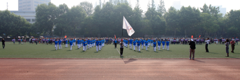 开幕式上,运动员代表和裁判员代表也分别进行了宣誓。随后,进行了环绕大操场的健身走和健身操表演,各院系单位离退休老同志一千余人参加了健身走,老同志们个个精神矍铄,步履如飞,场面非常壮观。