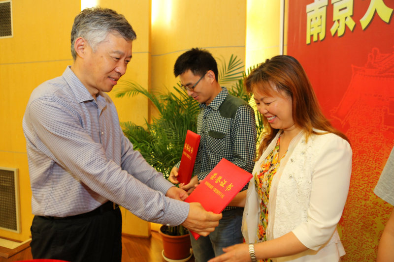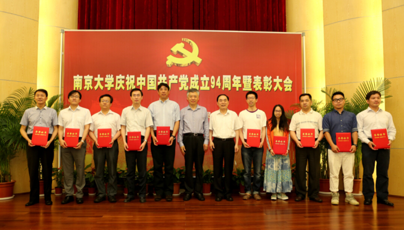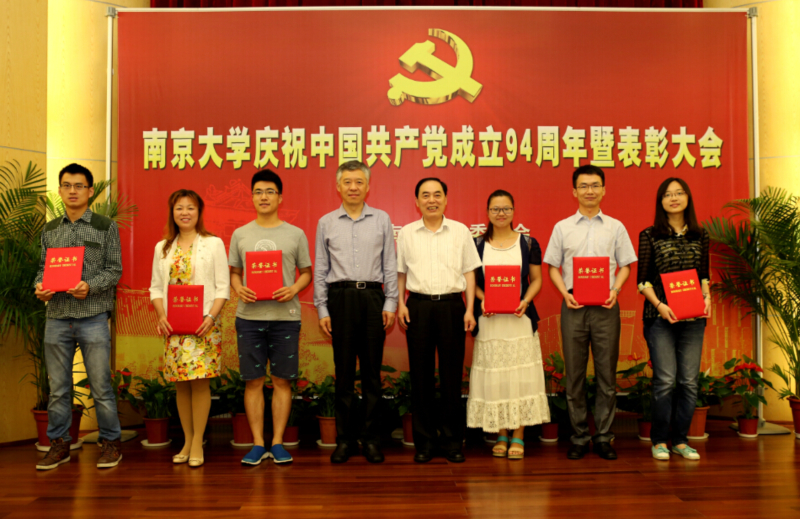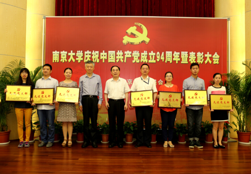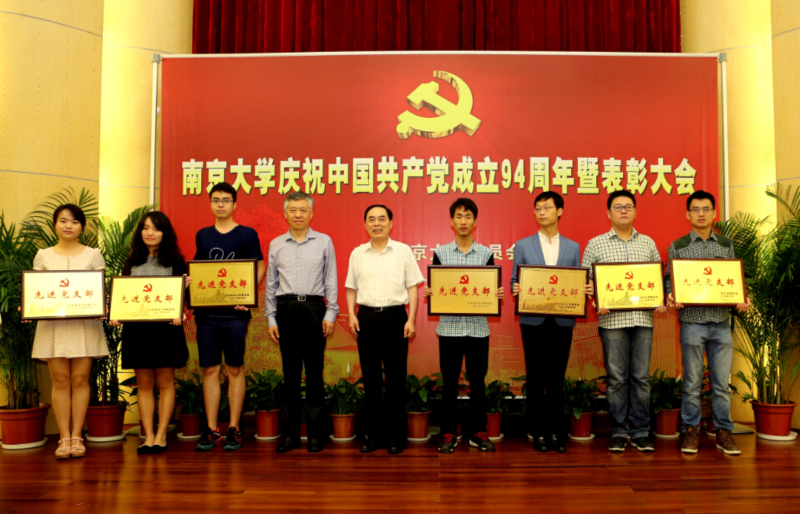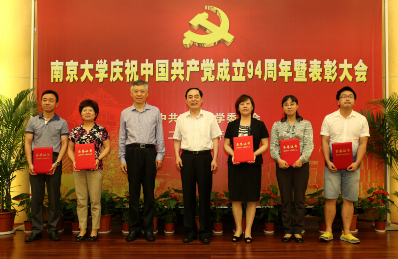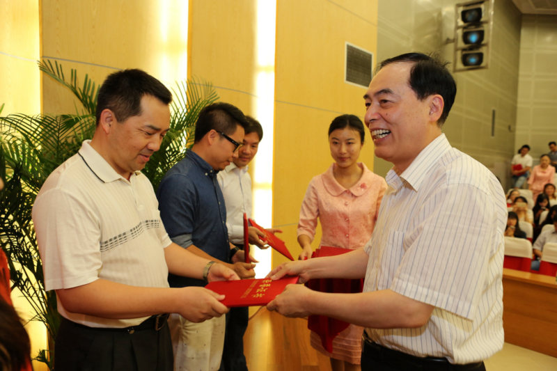 校党委书记张异宾、校长陈骏共同为获得表彰的先进党支部、优秀党支部书记、优秀党务工作者、优秀共产党员颁奖。
