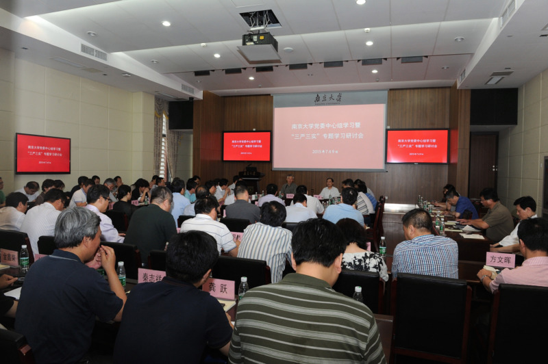 7月9日,凯发k8官网党委中心组学习暨“三严三实”专题学习研讨会在仙林校区召开。校党委书记张异宾、校长陈骏传达了中央会议和习近平总书记的讲话精神,党委副书记杨忠、任利剑、朱庆葆分别从学校工作实际出发,对如何“严以修身”,加强党性修养,坚定理想信念,把牢思想和行动的“总开关”,进行专题研讨。校党组中心组成员参加会议。会议由党委书记张异宾主持。