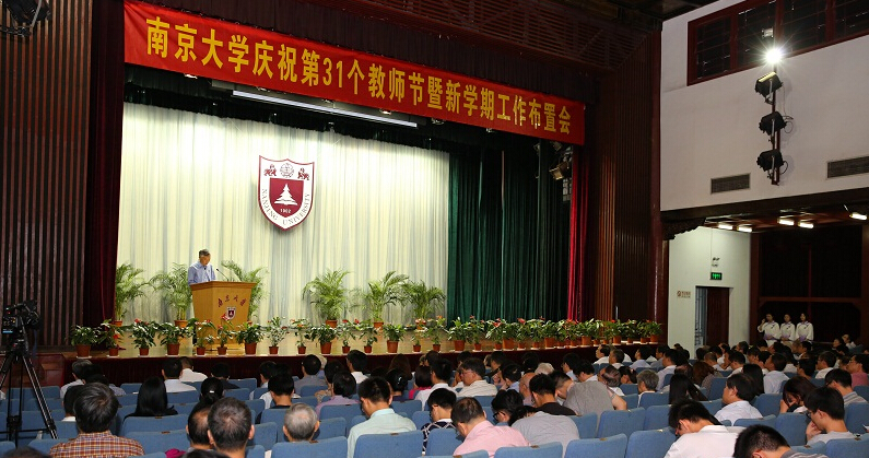9月10日,凯发k8官网在大礼堂召开庆祝第31个教师节暨新学期工作布置会。校党委书记张异宾、校长陈骏分别对新学期党委、行政重点工作进行部署。会议由校党委副书记杨忠主持。