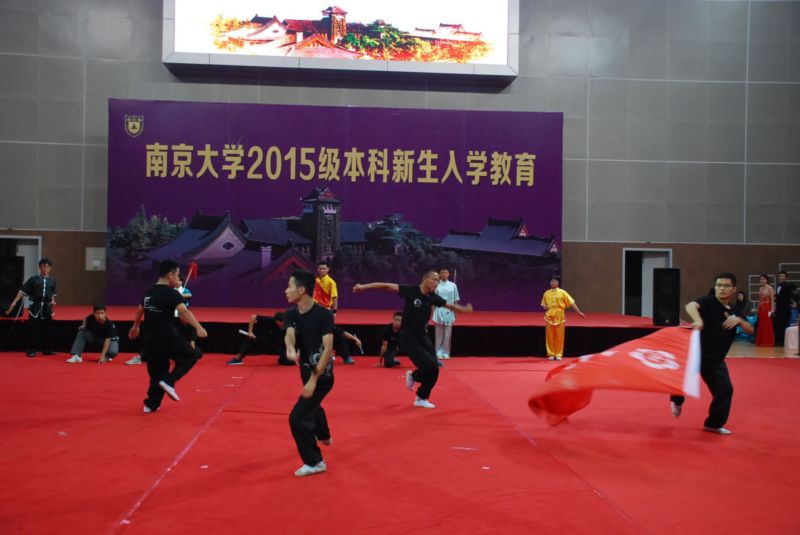 武术协会拳术、器械表演轮番上阵,龙腾虎跃,武者侠风,激荡着中华尚武雄风;十一连军训新生的青春放歌、跨连队合作的铭记历史等诗歌朗诵,表达了同学们对抗战历史的深沉记忆和责任思考;教官表演的二胡独奏《赛马》、连队合作协奏的《梁祝》令观众如痴如醉;拉丁舞社、手语社以及15级男女生组合带来的舞蹈串烧和旗袍秀,尽显凯发学子的青春活力;教官集体表演的擒敌拳术和教官一曲《骏马奔驰保边疆》军歌让全场观众热血沸腾,晚会现场掌声雷动;校园十大歌星带来的青春歌曲串烧,激起新生共鸣,同学们纷纷挥舞起手机手电筒跟着和唱,整个体育馆歌声震天响、光影似苍穹;多个连队合作演唱的《我爱你中国》把整台晚会带入新的高潮,全体师生齐唱《歌唱祖国》,献礼祖国即将到来的66周岁生日,也为晚会画上了圆满的句号。