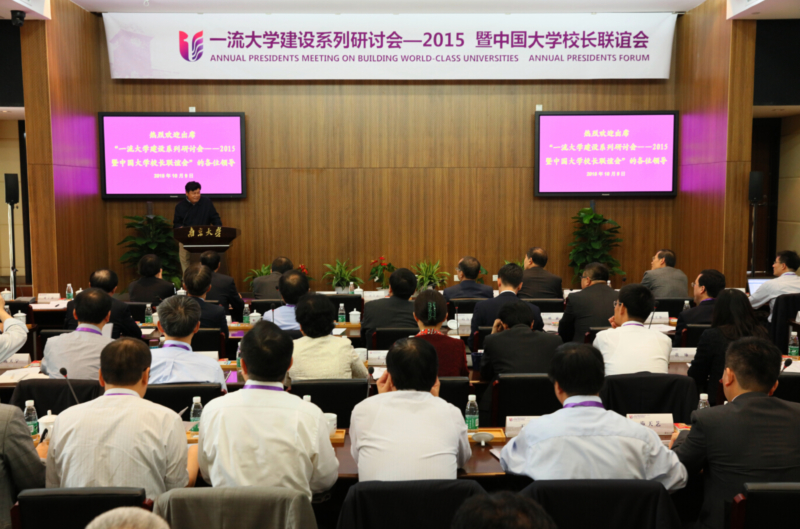 10月9日-10日,2015一流大学建设系列研讨会暨中国大学校长联谊会在我校仙林校区举行,来自内地及香港地区共12所知名高校的大学校长出席会议。凯发k8官网校长陈骏院士主持开幕式。教育部副部长杜占元,江苏省副省长曹卫星,凯发k8官网党委书记张异宾等出席开幕式。