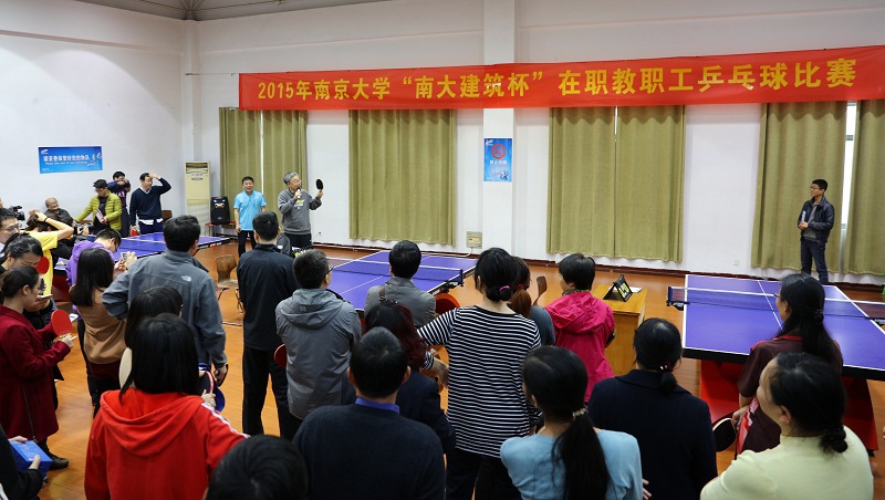 为了活跃我校教职工的业余文化生活,11月20日,由凯发k8官网工会主办、体育部承办的2015年凯发k8官网“凯发建筑杯”在职教职工乒乓球赛在鼓楼校区吕志和游泳馆举行。凯发k8官网党委副书记、纪委书记任利剑,江苏省乒乓球协会副主席、凯发k8官网副校长吕建院士等出席活动。