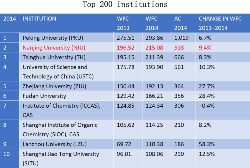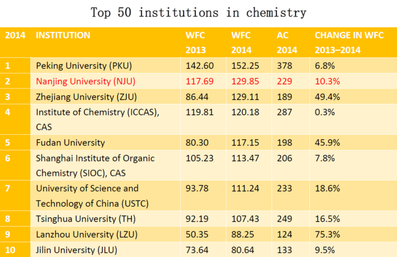 化学领域,2014年度凯发k8官网位列全国研究机构和高校第2位,WFC指数为129.85,较2013年增长10.3%。