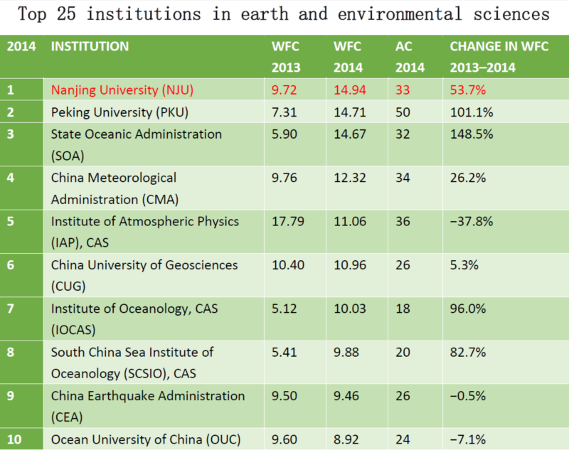 在地球与环境科学领域,2014年度凯发k8官网位列全国研究机构和高校第1位,WFC指数为14.94,较上一年度增长53.7%。