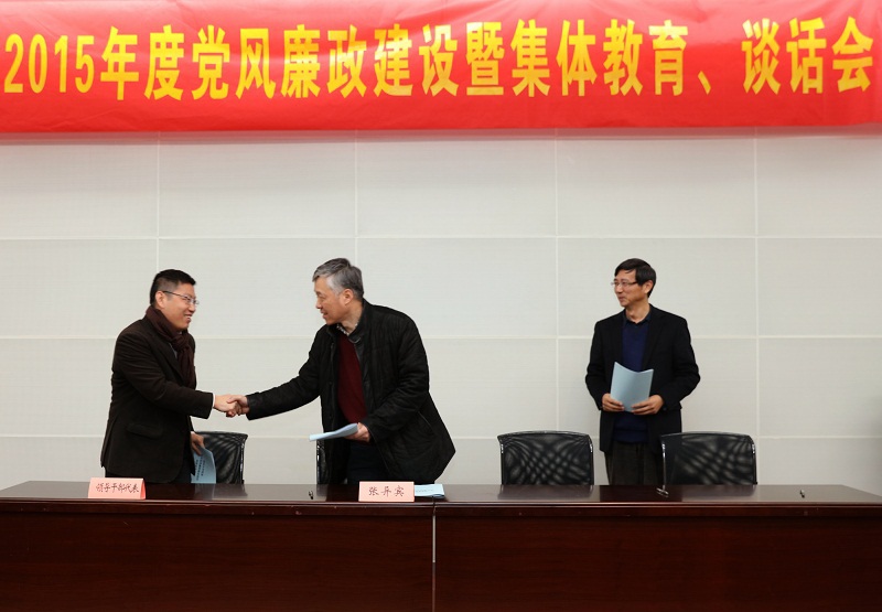 校党委书记张异宾和副校长邹亚军分别与2015年内新提任、转任的领导干部代表签订《党风廉政建设责任约谈承诺书》,告诫广大领导干部要真正担负起主体责任和“一岗双责”的重任,廉洁自律、洁身自好,自觉践行承诺。