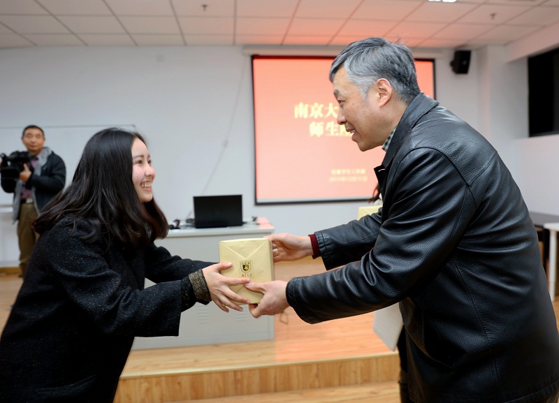 为参加座谈会的同学赠送礼物 (佘治骏 摄影)
