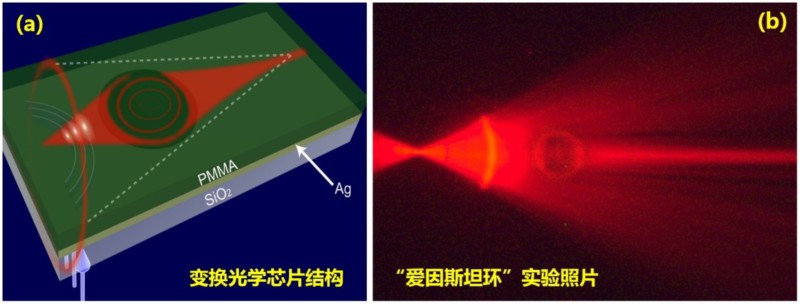 广义相对论研究宇宙的起源和天体运动获得巨大成功,最近,物理学院祝世宁教授、刘辉教授课题组与以色列理工学院的Segev教授组合作,利用爱因斯坦引力波方程与电磁理论中的对应关系,利用变换光学的方法,在光子芯片上成功地实现了的光波波前的调控, 为光子芯片光的操控提出了一种新的原理和方法。