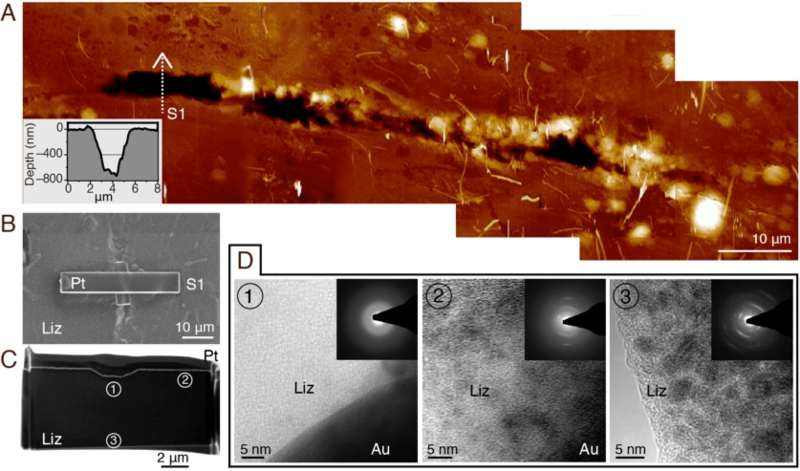 真菌菌丝在利蛇纹石矿物表面形成的~85微米长溶蚀通道及菌丝-矿物界面以下矿物特征的变化